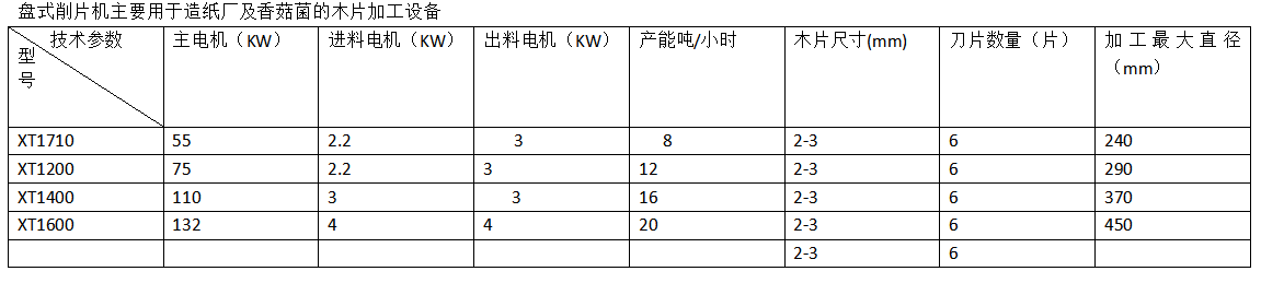 盤式削片機(jī)主要用途為造紙廠、硅廠、高密度板廠、香菇菌等削片加工的專用設(shè)備,加工原料廣泛于各種樹木及竹子,機(jī)型分XT1000、XT1200、XT1400、XT1600、XT1800型,刀片數(shù)量常用為3--6片,可與木材剝皮機(jī)組成流水線使用,產(chǎn)量每小時8--30噸。
